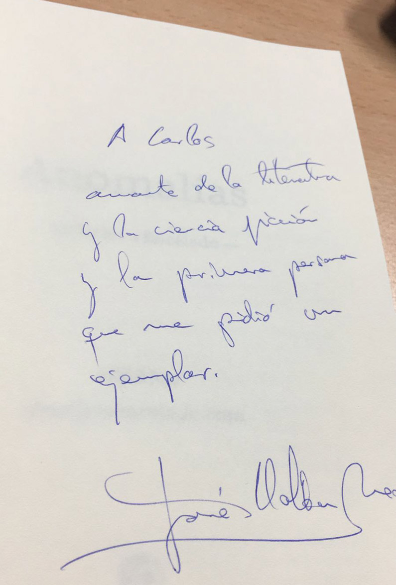 Un alumno de IEEF publica su primera novela: Anomalías: de Uclés a Encélado. ¡Qué gusto ver a un alumno que termina de estudiar!, además de trabajar en lo que le gusta, tiene inquietudes, no se conforma y va más allá. Es el caso de Jose Villaba, a quien siempre le gustó escribir, los videojuegos, la ciencia ficción… ha plasmado todo esto en su primera novela, editada por Letras de Autor. Está escrita a cuatro manos con Higinio Serrano y cuenta una historia sobre el despertar de la consciencia:“Anomalías: de Uclés a Encélado” cuenta como el Hombre, ese ser frágil, breve, abandonado a su suerte en mitad de un error llamado Cosmos y depositario del pensamiento, experimenta un salto evolutivo tan inesperado como prematuro, negado a razas inteligentes más antiguas. Cuenta como ese salto convierte su consciencia en una de las facultades más poderosas del Universo despojándolo de su anonimato y situándolo en el punto de algunas miras.“Anomalías”, cuenta la historia no conocida de la Humanidad: desde el nuevo despertar de la consciencia hasta el momento del Primer Contacto alienígena, hecho que convierte a los humanos en una presa codiciada, y al Orbe, su hogar, en un coto de caza donde el conocimiento será su única ventaja…